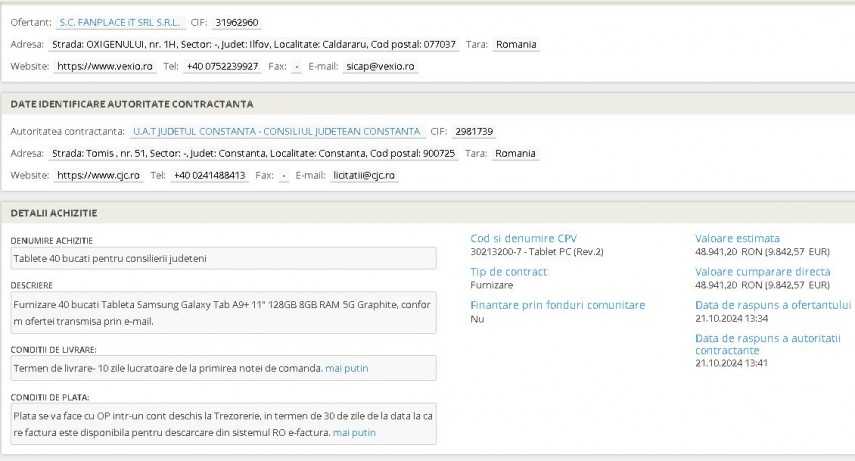 Cumpărări directe O compania din Ilfov livrează tabletele care vor fi utilizate de consilierii județeni constănțeni (DOCUMENT)