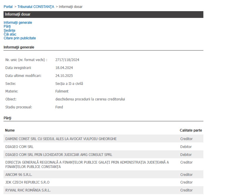 Insolvența firmei Diageo Com SRL, pe rolul Tribunalului Constanța