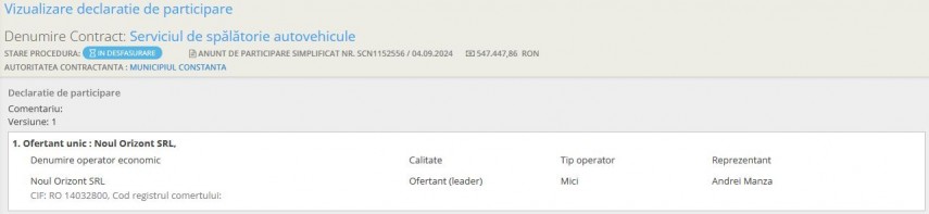 - Primăria Constanța a lansat în luna septembrie în Sistemul Electronic de Achiziții Publice prin care caută să angajeze servicii de spălătorie a autovehiculelor
