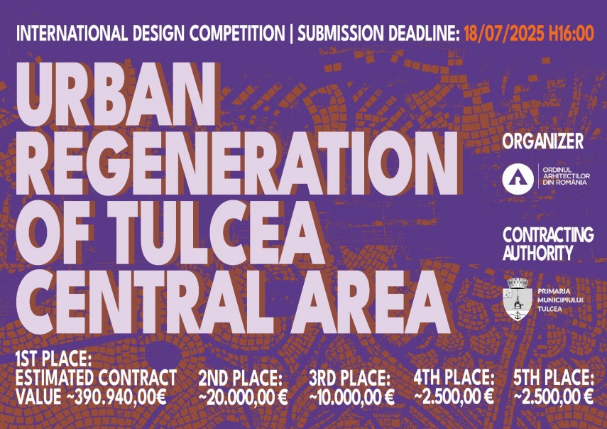 „Ordinul Arhitecților din România (OAR), cu sprijinul Filialei Teritoriale Dobrogea a OAR, alături de Autoritatea Contractantă – Municipiul Tulcea anunță oficial lansarea Concursului Internațional de Soluții „Regenerare urbană Zona centrală – Piața „Mircea cel Bătrân”, strada Unirii și Zona „Trei Fântâni” din Municipiul Tulcea”.