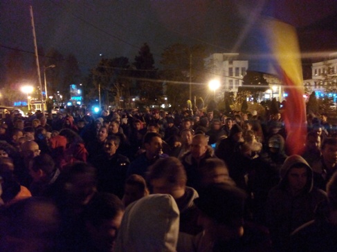 Grupul de manifestaţi, care s-a îngroşat în utimele ore şi a ajuns la câteva sute de constănţeni au ajuns în faţa Primăriei din Constanţa, unde scandează "Mazăre, nu uita, ai promis demisia!" şi "Mazăre, nu uita, ai un om la Rahova!". Ei mai strigă, "Nu vă fie frică, PSD-ul pică!", "Reţeta pentru ruină - mazăre şi cocaină", "Mircea Badea te oftici? Constănţenii sunt aici"!, "Jos baronii PSD!", "Fără amnistie, toţi la puşcărie"!