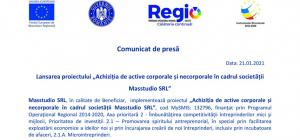 Anunț de presă Lansarea proiectului „Dotarea cu active corporale noi la SC MAXIMA FENSTER SRL”