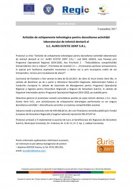 Anunț de presă Lansarea proiectului „Dotarea firmei Toldimed SRL cu echipamente în domeniul tehnicii dentare”
