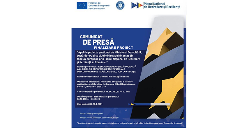 Comunicat de presă – Finalizare proiect în comuna Mihail Kogălniceanu