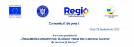Comunicat de presă Finalizarea proiectului „Îmbunătățirea competitivității SC Alexcor Trading SRL în domeniul lucrărilor de construcții drumuri”