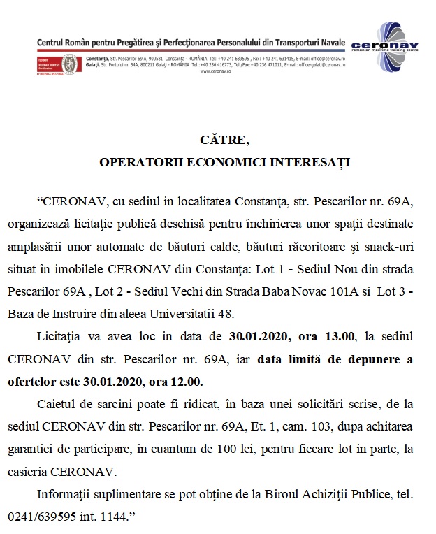 Licitație publică organizată de Ceronav