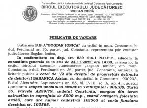 Publicație de vânzare BEJ Bogdan Ionică - imobil situat în Constanța, bulevardul 1 Mai
