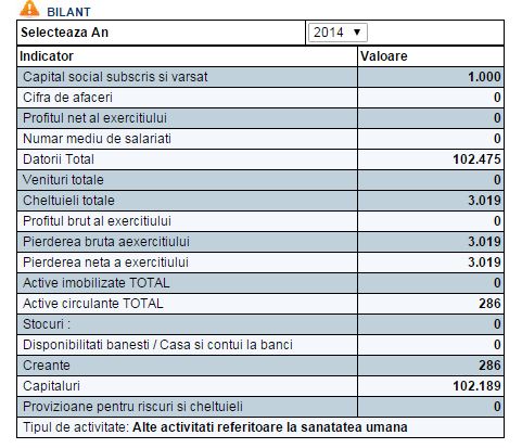 Societatea fusese înfiinţată în 2007 şi, potrivit vrajitorul.eu, firma avea datorii totale de 102.475 lei şi niciun salariat.