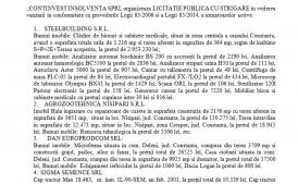 Continvest Insolvenţă SPRL, în calitate de administrator judiciar al debitorului SC Steelbuilding SRL, conform Încheierii/ 28.01.2013 pronunţată de Tribunalul Constanţa, Secţia a II a Civilă, în dosarul 602/118/2013, convoacă adunarea creditorilor debitorului. Adunarea creditorilor va avea loc la sediul administratorului judiciar de pe strada Maior Şofran nr. 3, pe data de 10.11.2015, ora 16.00. Pe ordinea de zi a fost inclus un singur punct şi anume prezentarea situației autoturismului Fiat Doblo, a ofertei de cumpărare primite şi aprobarea vânzării conform ofertei. Pe lista creditorilor SC Steelbuilding SRL se regăsesc: Banca Transilvania SA prin Sucursala Constanţa, Direcţia Generală a Finanţelor Publice Constanţa, salariaţi prin reprezentant Damu Stere, Serviciul Public de Impozite şi Taxe Locale Constanţa, SC PENTAGON SRL, SC Ellmedica Consulting SRL, SC Structuri din Oţel SRL, SC Steelbuilding D.G. SRL, SC Metalica D.G. SRL, Atelier Mecanic Preuzinal, SC NCR Solutions Net SRL, SC Germanischer Lloyd Industrial Services România SRL, SC Basil Young Trans SRL, SC Polaris M Holding SRL, SC Roma Dan SRL, SC Milex Profesional Group SRL, SC Urban & Asociaţii SRL, SC Julmi Star SRL, SC BCD Intermed SRL, SC La Fântâna SRL, SC 2X1 Holding Cape Midia Shipyard SA, SC Sorex Team SRL, SC Galmirad Grup SRL, SC Lufadori Extract SRL, Compania Naţională Administraţia Porturilor Maritime”- SA Constanţa, SC I.R. Service SRL, P.F.A. Tatu Cătălin, SC Thyssenkrupp Materials Romania SRL, Gabara Dorin Nelu.