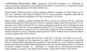 Steelbuilding, în picaj: Proprietăţi aparţinând constructorului primei nave construite pe uscat la Midia, scoase la licitaţie (document)