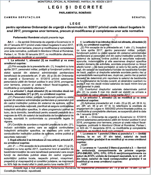 Ieri, a fost publicat în Monitorul Oficial al României numărul 403/29 mai 2017 Legea numărul 115 din 24 mai pentru aprobarea Ordonanței de Urgență a Guvernului numărul 9/2017 privind unele măsuri bugetare în anul 2017, prorogarea unor termene, precum și modificarea și completarea unor acte normative.