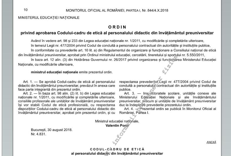 Atenţie elevi, părinţi, bunici, profesori A fost publicat Codul-cadru de etică al personalului didactic din învățământul preuniversitar