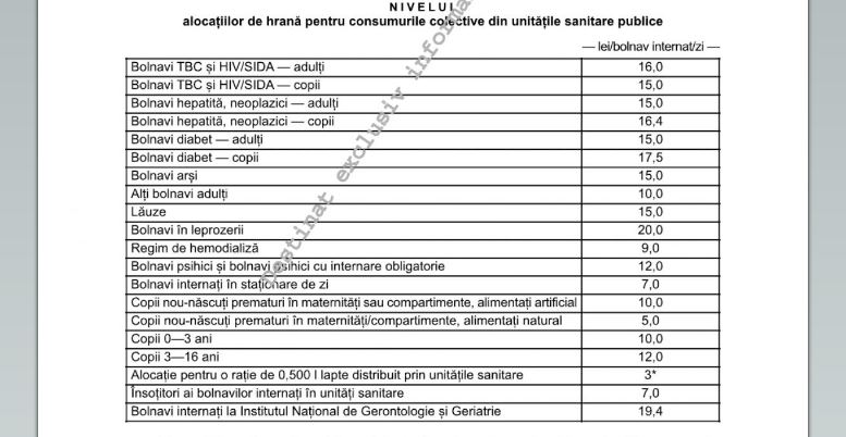 Nivelul alocațiilor de hrană pentru consumurile colective din unitățile sanitare publice lei/bolnav internat/zi