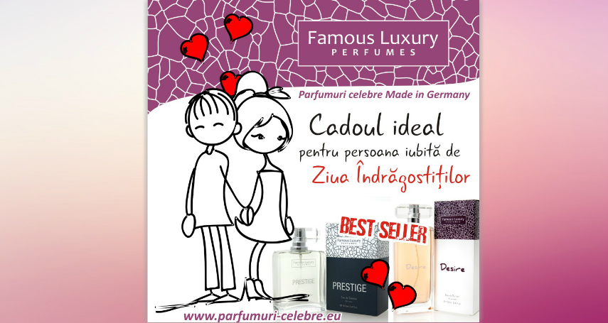 Eleganta, originalitatea, rafinamentul si calitatea celor mai apreciate parfumuri din Romania, Famous Luxury Perfum, va fi fara indoiala apreciata asa incat nu mai ezita – comanda online cadoul perfect pentru persoana iubita sau direct la telefon 0737 506 768.
