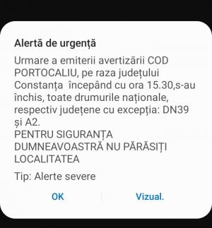 Administrația Națională de Meteorologie a emis, în urmă cu puţin timp, avertizarea nowcasting de vreme severă pentru judeţul Constanţa, în special pentru localităţile Cernavodă, Mircea Vodă, Rasova, Peștera, Oltina, Aliman, Saligny, Seimeni, Ion Corvin.Se vor semnala, până la ora 21.45, averse ce vor depăși 25 l/mp, descărcări electrice, intensificări de scurtă durată ale vântului, grindină de mici dimensiuni.