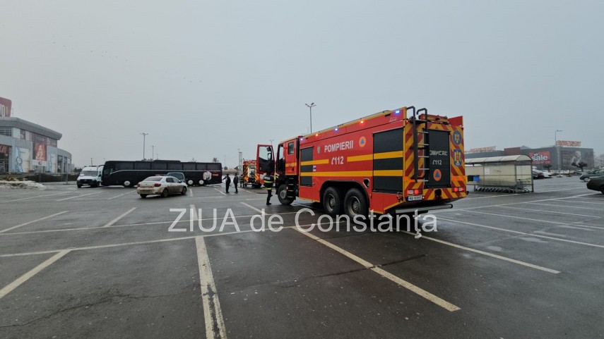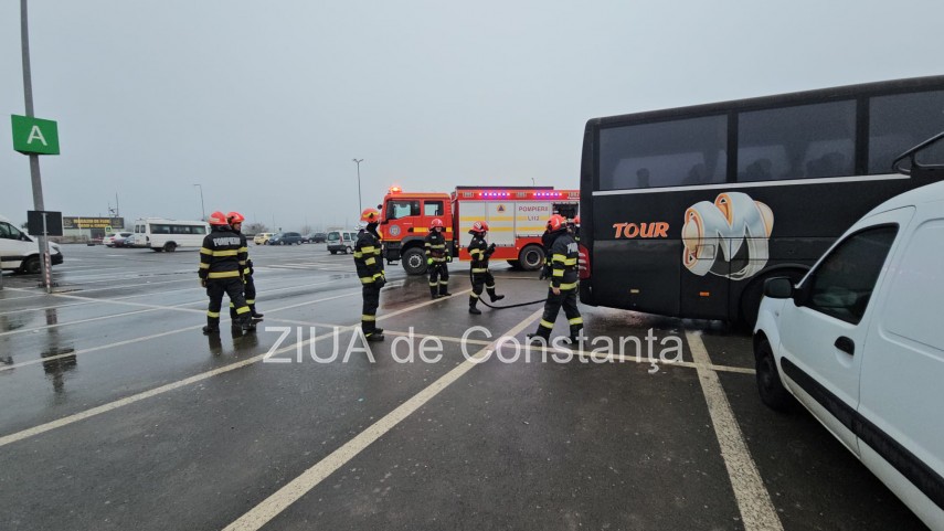 UPDATE. FOTO+VIDEO: Incendiu la un autocar în parcarea Vivo Mall din Constanța! Intervin pompierii ISU Dobrogea