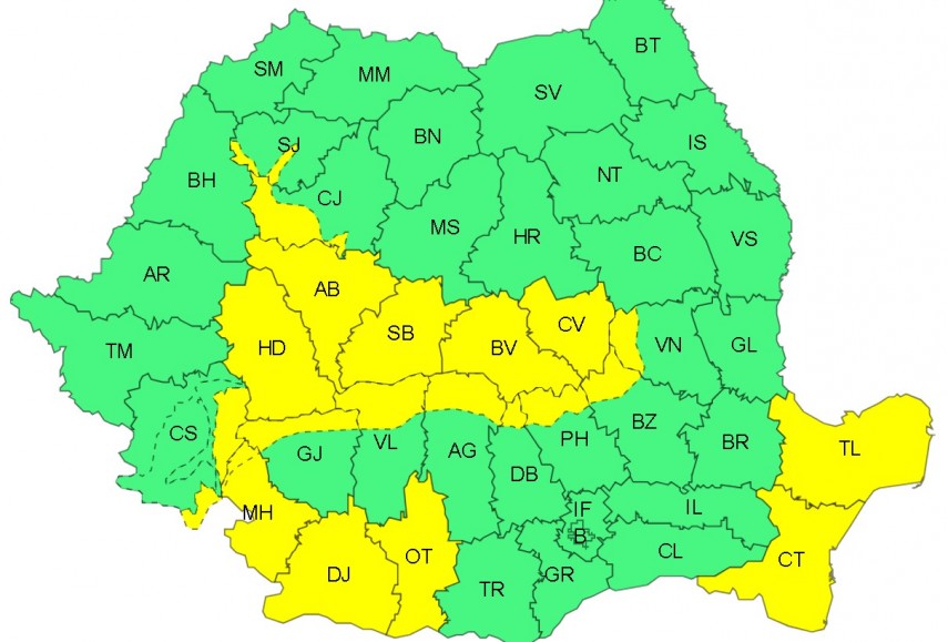 De asemenea, în Munții Apuseni, Carpații Meridionali și în Carpații de Curbură vor fi viteze de 70...80 km/h, iar în zona înaltă rafalele vor atinge temporar 90...100 km/h.