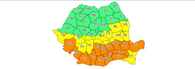 De la ora 23.00, meteorologii anunţă cod portocaliu. În sudul Banatului și al Olteniei, în cea mai mare parte a Munteniei și a Dobrogei ninsorile vor fi abundente, iar vântul va avea intensificări cu viteze de 50...60 km/h și temporar 65...70 km/h, viscolind și local troienind zăpada și determinând diminuarea vizibilității.