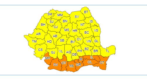 În nordul Olteniei, Munteniei și al Dobrogei temperaturile maxime vor fi cuprinse, în general, între 34 și 36 de grade, iar indicele temperatură-umezeală (ITU) se va situa în jurul pragului critic de 80 de unități.