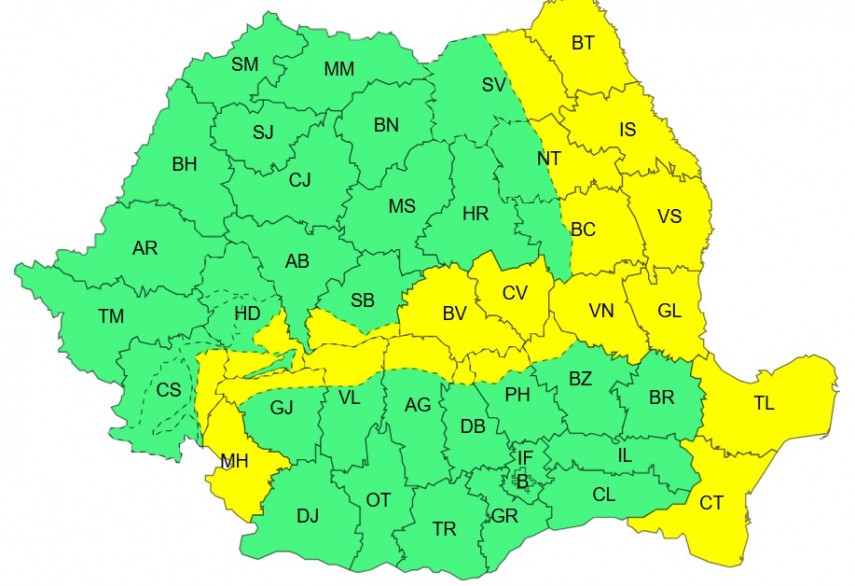 Cod Galben de vânt emis pentru Moldova, Dobrogea, sud-estul Transilvaniei și vestul Olteniei!