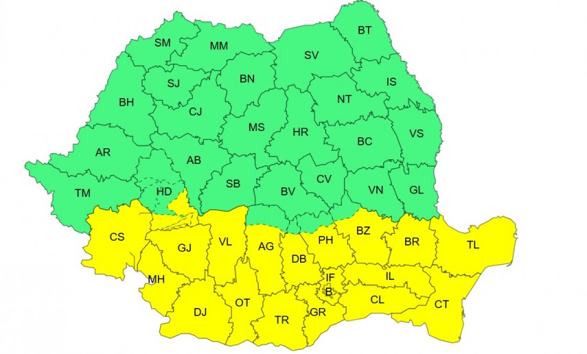 De asemenea, a fost emis un cod galben de intensificări ale vântului, ninsori viscolite și strat de zăpadă și polei, valabil pentru Dobrogea, Muntenia, Oltenia și sudul Banatului.