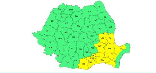 Cod Galben în Dobrogea, Moldova, și o parte a Munteniei. Prognoza meteo făcută de specialiști