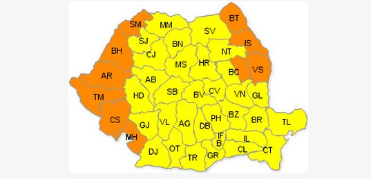 Judeţele care vor fi afectate de temperaturi maxime de 37 - 38 de grade sunt Bihor, Satu Mare, Arad, Timiș, Caraș-Severin, Mehedinți, Botoșani, Iași, Bacău și Vaslui vor fi temperaturi maxime de 37 - 38 de grade. În aceste judeţe, disconfortul termic va fi deosebit de accentuat.