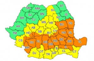Potrivit ANM, în județele Caraș – Severin, Timiș, Hunedoara și Arad vor fi averse torențiale și grindină. Local cantitățile de apă vor fi de 40...70 l/mp (în intervale scurte de timp, de până la 1 – 3 ore).