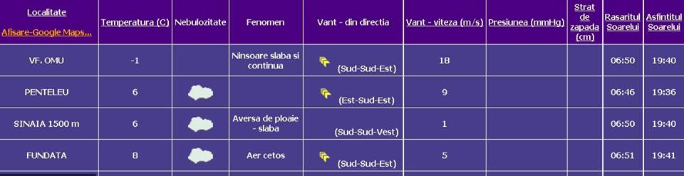 Potrivit Meteoplus, temperatura înregistrată a fost de -1 grad celsius.
