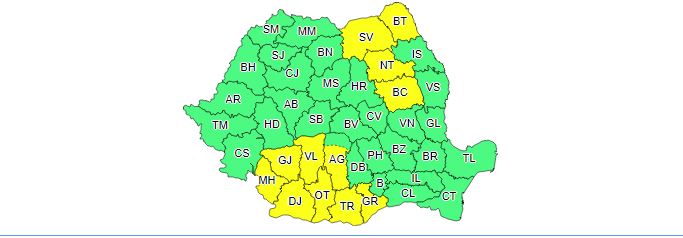 Potrivit ANM, în județele Suceava, Botoșani, Neamț, Bacău, Argeș, Dâmbovița, Teleorman, Gorj, Vâlcea, Olt, Dolj, precum și în zona de munte a județelor Vrancea și Prahova instabilitate atmosferică va fi accentuată și se va manifesta prin intervale cu averse torențiale, intensificări ale vântului, vijelii, grindină și frecvente descărcări electrice. În intervale scurte de timp sau prin acumulare, se vor înregistra cantități de apă ce vor depăși 40 l/mp și izolat 50...70 l/mp.