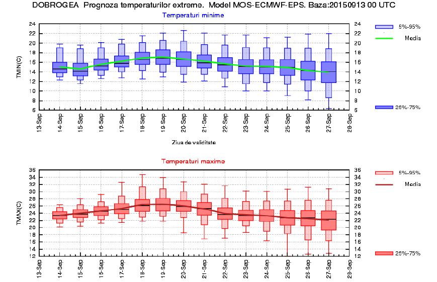 Cu privire la minimele termice, acestea se vor situa, în medie, între 14 şi 17 grade, pe tot parcursul intervalului. Probabilitatea de apariţie a ploilor, în general slabe cantitativ, va fi mai mare începând cu data de 22 septembrie.