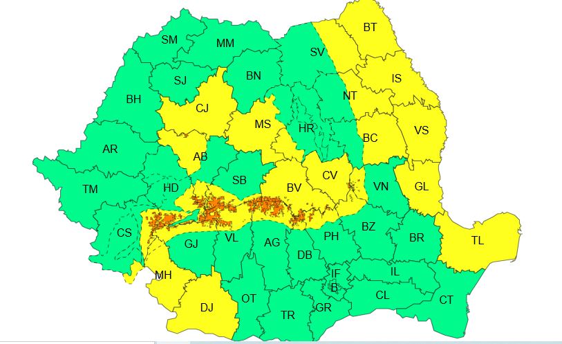 Este în vigoare și un COD PORTOCALIU valabil de la 25 februarie, ora 10:00 – 25 februarie, ora 20:00.