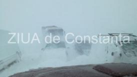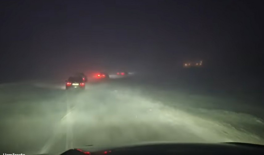 Vântul puternic și viscolul sever au redus vizibilitatea la zero, făcând deplasarea autovehiculelor periculoasă.