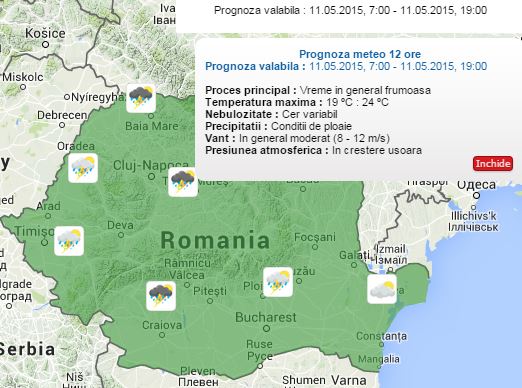 Până la ora 15.00 rămâne în vigoare informarea meteorologică de ploi torenţiale şi descărcări electrice, valabilă pentru toată ţara.