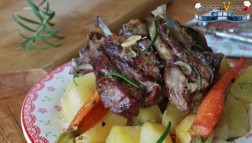 Cotlete de miel la cuptor, cu lămâie şi legume (reţetă video)