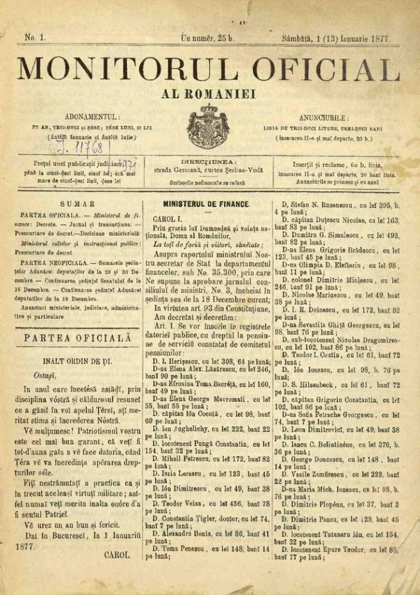Foaia oficială a statului român este martora evoluției acestuia - un adevarat breviar al principalelor evenimente istorice, politice și culturale care au dus la apariția și dezvoltarea României moderne.