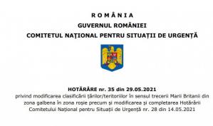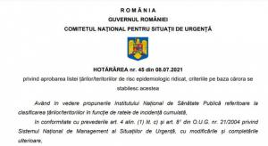 A fost aprobată lista actualizată a statelor cu risc epidemiologic ridicat, pentru care se aplică măsura carantinei în cazul cetățenilor care sosesc în România din aceste state (https://www.cnscbt.ro/index.php/liste-zone-afectate-covid-19 )