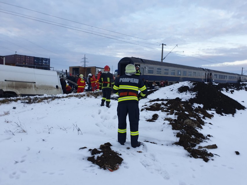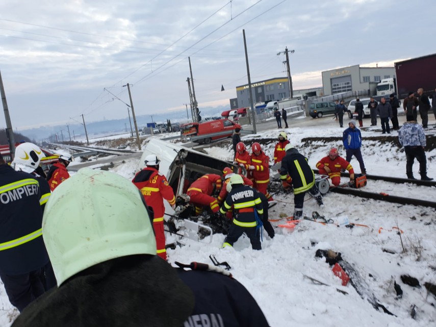 Accident grav în județul Suceava Autoutilitară, lovită de tren. O persoană a murit (galerie foto)