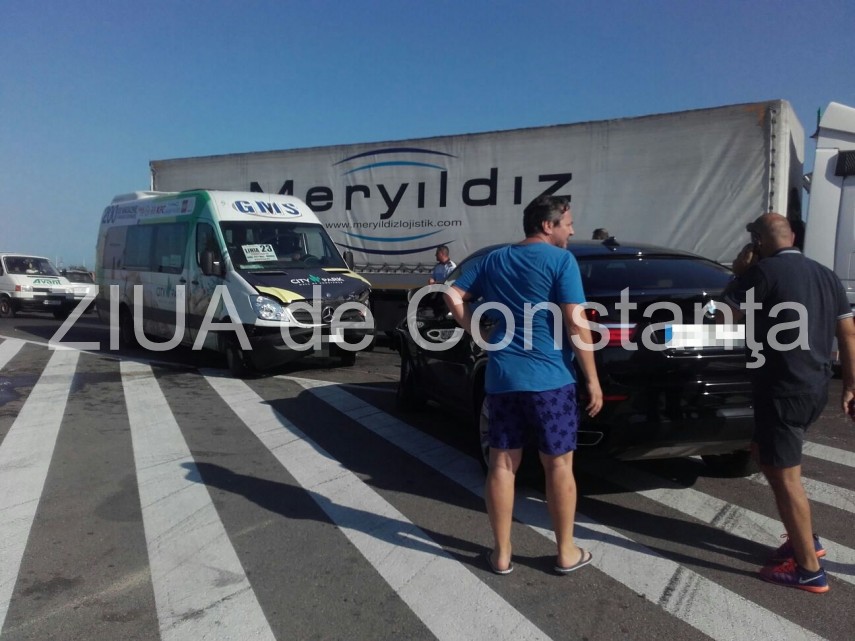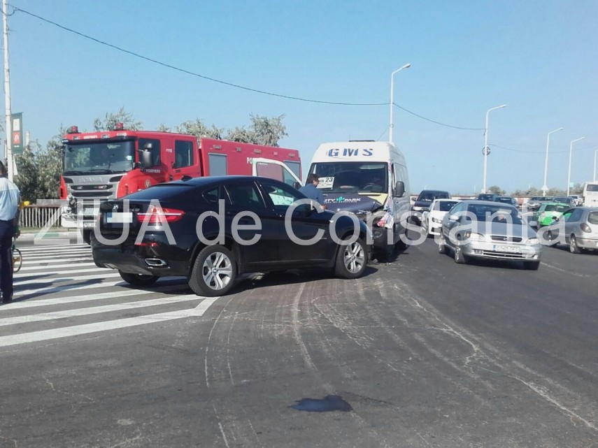 Accident rutier pe podul de la Năvodari. Trei persoane au fost rănite. Maxi-taxi 23 implicat în accident (galerie