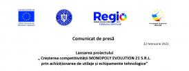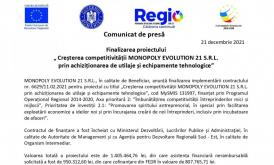 Finalizarea proiectului „Creșterea competitivității MONOPOLY EVOLUTION 21 S.R.L. prin achiziționarea de utilaje și echipamente tehnologice“