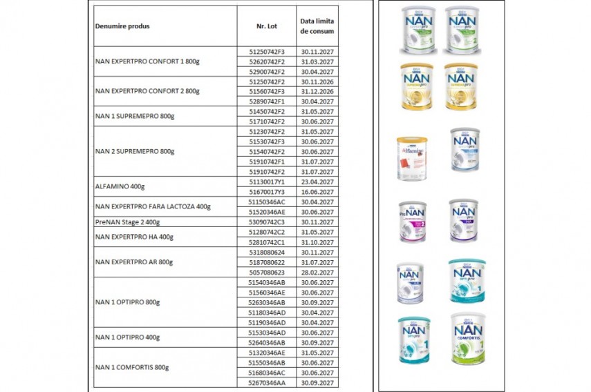 Compania Nestlé România a anunțat retragerea de pe piață, ca măsură de precauție, a unei cantități limitate de formule de lapte praf. Decizia a fost luată din prudență maximă, după ce s-a constatat o neconformitate la un ingredient provenit de la un furnizor extern, existând suspiciunea prezenței cereulidei în loturile vizate.