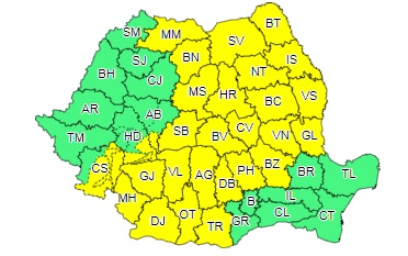 Adminsitrația Națională de Meterologie a emis un atenționare meteo de tip cod galben pentru o mare parte din țară. Intervalul de valabilitate este: 28 septembrie, ora 18:00 - 29 septembrie, ora 12:00.