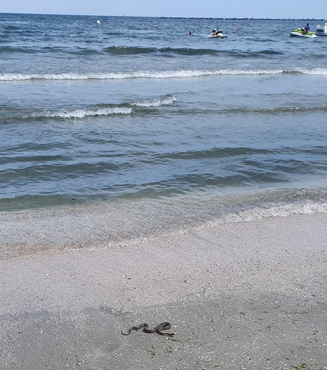 Apariție ciudată pe plaja din Mamaia. Un șarpe de un metru a speriat turiștii