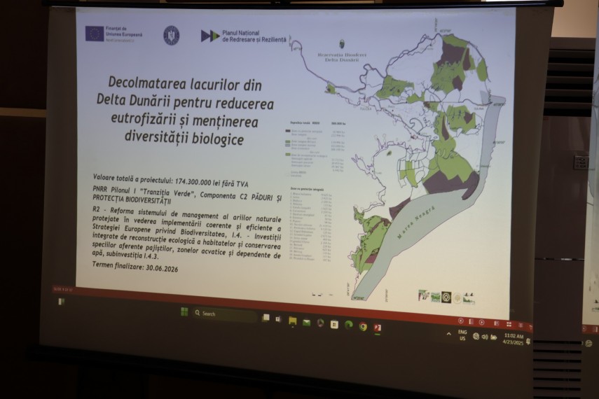 Astăzi, 23 aprilie 2025, Sorin Moranu, consilierul vicepreședintelui Consiliului Județean Tulcea, a participat la conferința de lansare a proiectului „Decolmatarea lacurilor din Delta Dunării pentru reducerea eutrofizării și menținerea diversității biologice“, finanțat prin Planul Național de Redresare și Reziliență 2020-2026, implementat de Administrația Biosferei Delta Dunării.
