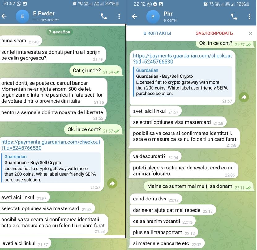 „Momentan ne-ar ajuta enorm 500 de lei, organizăm o întlnire pașnică în fața secțiilor de votare dintr-o provinice din Italia pentru a semnala dorința noastră de libertate. Ne-ar ajuta cât mai repede, ca sa hrănim votanții, plus să-i transportăm și materiale, pancarte“, este un mesaj primit pe Telegram.
