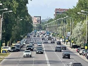 Coloana de mașini se întinde pe o porțiune semnificativă.