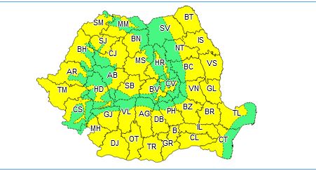 Temperaturile maxime, cu mult mai mari decât mediile climatologice specifice perioadei, se vor situa în general între 34 și 37 de grade, cu cele mai ridicate valori în regiunile vestice și sud-vestice.