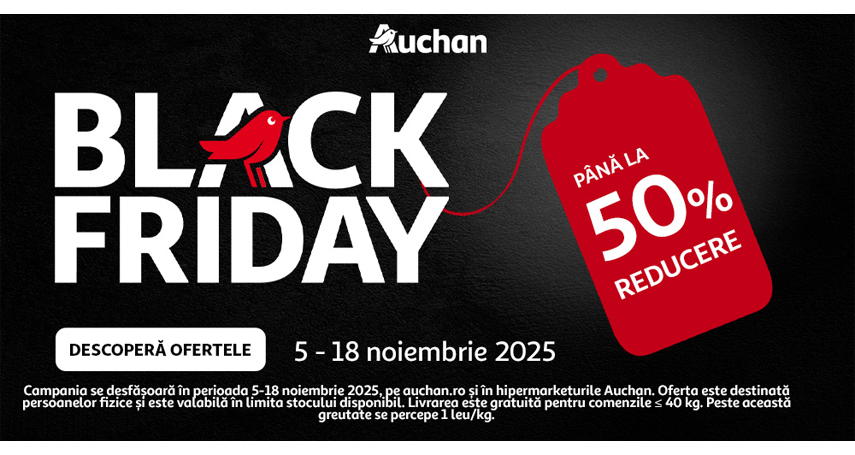 Auchan dă startul Black Friday 2025 Peste 1.500 de produse cu reduceri de până la 50% în magazine și pe auchan.ro