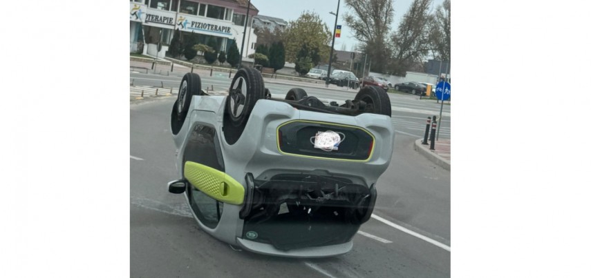 Autoturism răsturnat în zona Hotelului Dobrogea din Constanța