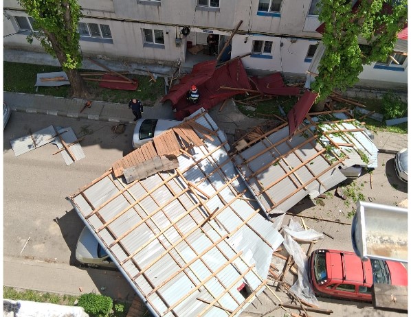 Incidentul a avut loc pe strada Aleea Stadionului, unde aproximativ 150 de metri pătrați de acoperiș au fost dislocați de vânt și au căzut peste o persoană.